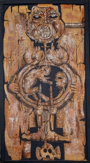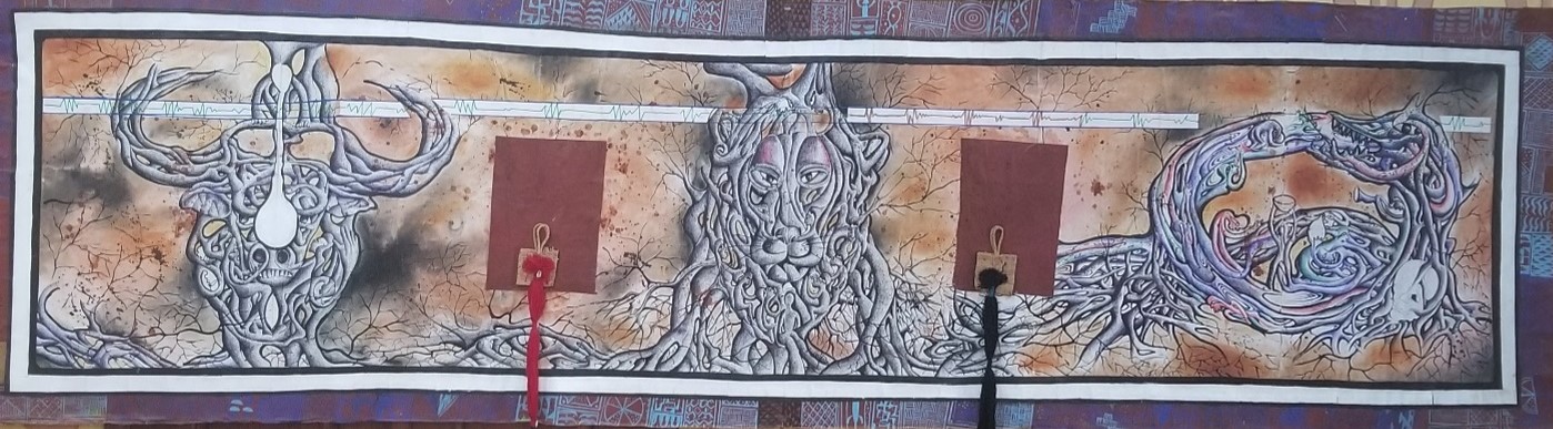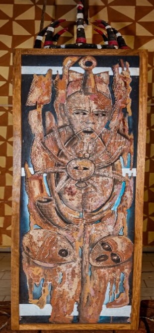Elle incite au questionnement sur la portée potentielle des gestes et des créations et traduit la manière dont les artistes sentent et vivent les réalités de leur société. Comme nous l’enseigne Mbog Bassong[1], l’art africain est expiateur, il sert à aider la société à questionner et à travailler les traumatismes dont elle est victime.