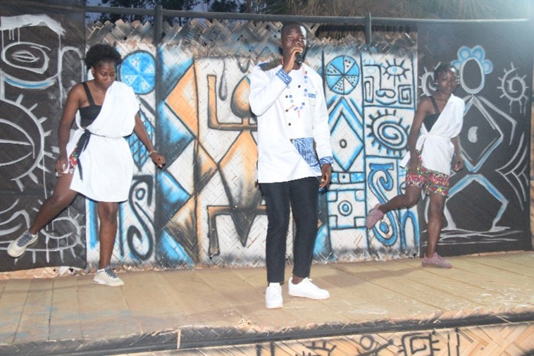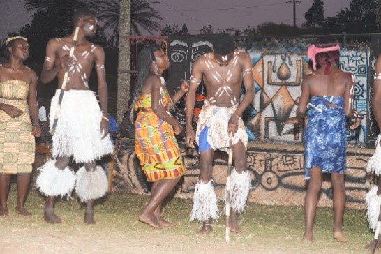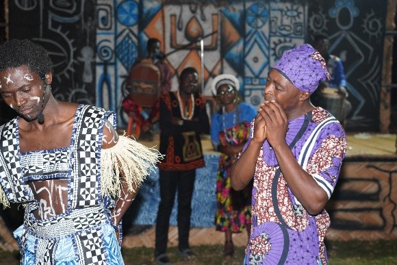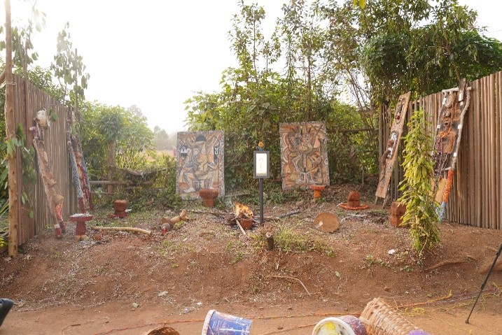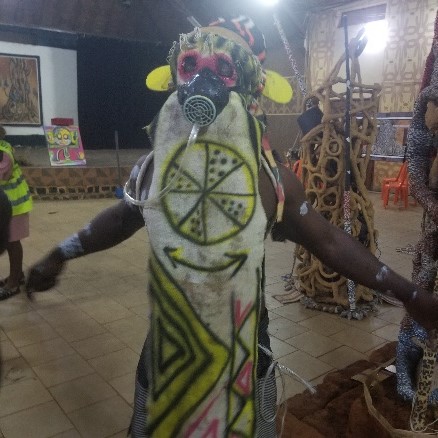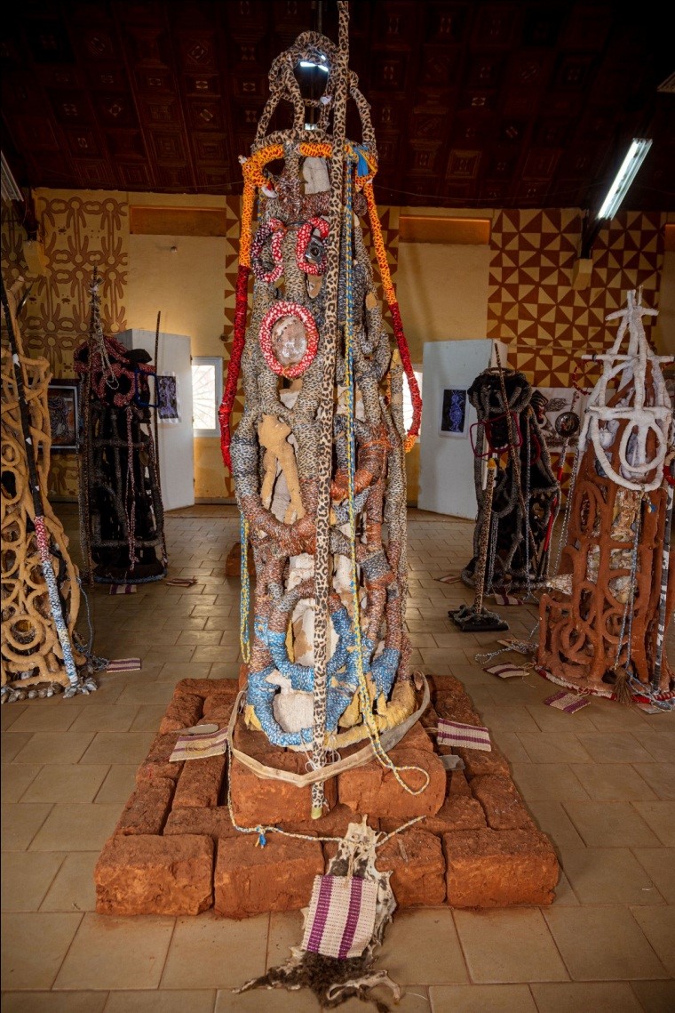 En fait, depuis le Musée des Civilisations dont le dispositif scénographique et le politique de gestion est calqué sur le modèle occidental, l’exposition s’est déployée dans l’espace ciel ouvert de l’alliance Franco Camerounaise où, une multitude de Musées se côtoyaient. Ceci est à notre sens très pertinent, car chaque articulation de l’exposition et chaque performance vivante englobaient des charges matérielles et immatérielles aussi bien que chaque élément convoqué dans celles-ci. À ce titre, il est important de parler des musées vivants dont la position sur la place publique facilitait le contact permanent, libre, gratuit, avec ou sans bruits, et le dialogue avec le public.
