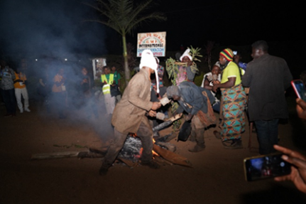 La suite de cette invitation plonge la scène dans un imaginaire où se consommaient les contradictions et les frottements dans la chefferie avec le chef et ses notables.