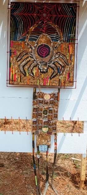 Dans cette collection, l’artiste fait usage de mégots de cigarettes, des cartes mères d’appareils électroniques usagers, des morceaux de plastiques et autres matériaux hétéroclites.