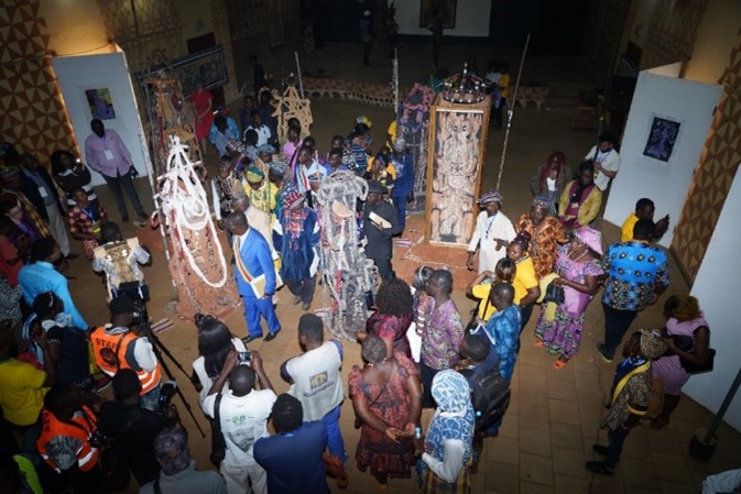 L’unanimité autour des objets en actions permanentes dans les espaces publics (après des initiations secrètes) et non derrière des vitres est presque acquise dans l’Afrique ancienne. Le caractère communautaire au fondement des sociétés accorde une place importante aux « objets », synthèse d’une variété d’informations spirituelles et sociales, et en contact permanent avec les sujets dans des espaces publics ouverts (place de marché ou du village, carrefours, espaces à palabre, sanctuaires, cases du peuple…).