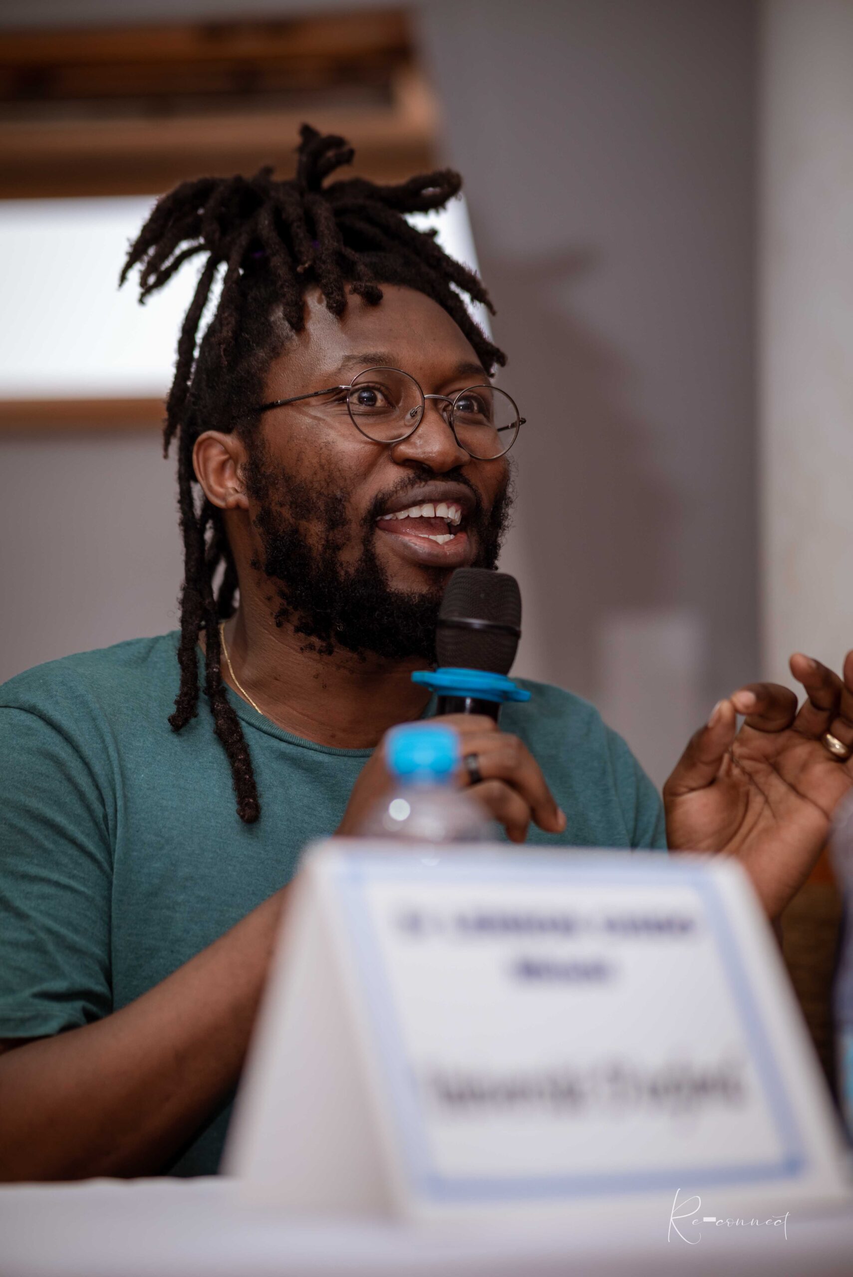 Le logo Reconnect qui est l’identité artistique de cet évènement est une œuvre de l’artiste Natural Mystik, combinant une multitude d’informations. De sa forme hexagonale centrale représentant l’abeille qui est un archétype du matriarcat africain et du bâtisseur, à la combinaison stylisée de la tortue (symbole de la sagesse, de l’ancêtre donc de la mémoire), ce logo invite à la vigilance à travers un œil central.
